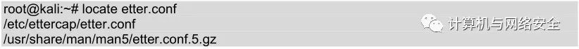 (1)配置Ettercap的配置文件etter.conf。首先使用locate命令查找到Ettercap配置文件保存的位置。执行命令如下所示: