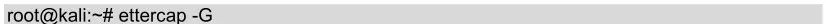 (3)启动Ettercap。使用Ettercap命令的-G选项,启动图形界面。执行命令如下所示: