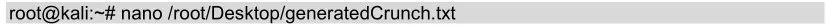 执行以上命令后,将会打开generatedCrunch.txt文件。该文件中保存了使用crunch命令生成的所有密码。