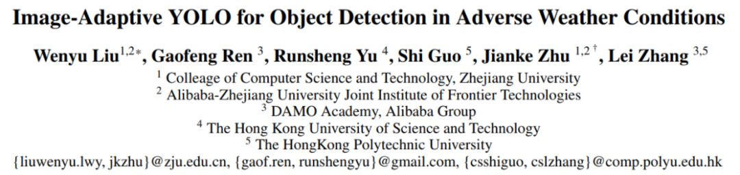代码:https://github.com/wenyyu/Image-Adaptive-YOLO