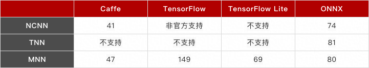 通用性上MNN的优势也不容置喙,MNN在通用性上下了很大的功夫,你看支持的算子数目就可以知道这算是MNN的一个工作重点。