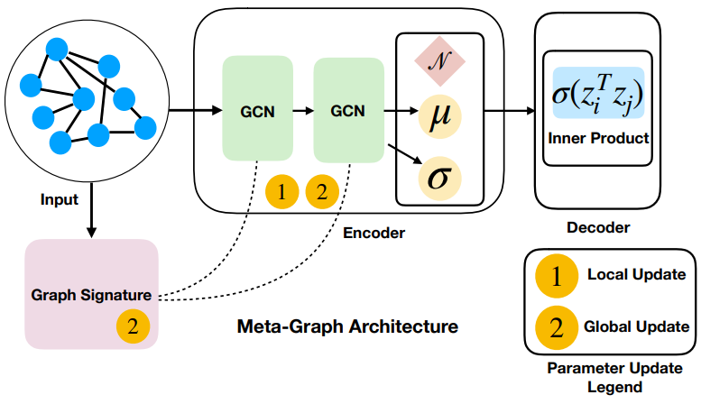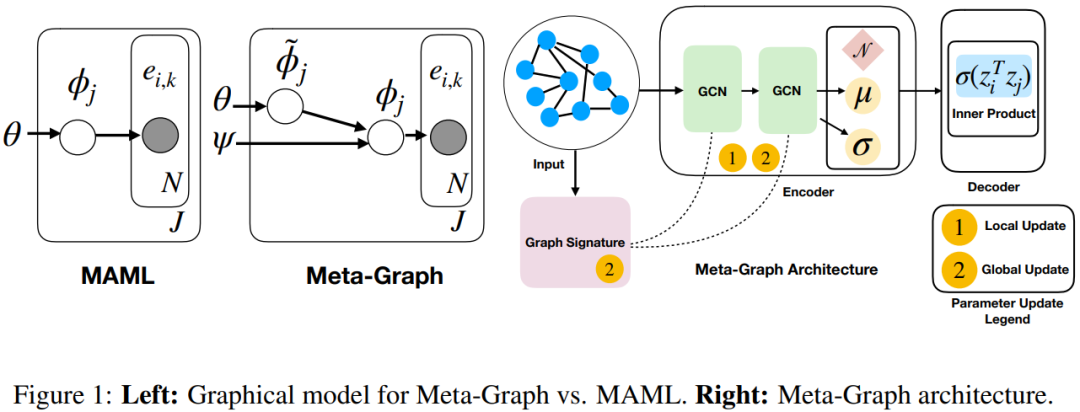 这篇文章是基于论文“Meta-Graph: Few Shot Link Prediction via Meta Learning” by Joey Bose, Ankit Jain, Piero Molino, and William L. Hamilton. 许多真实世界的数据都是以图的结构呈现,因此,多年来基于图的机器学习研究一直是学术界研究的一个活跃领域。其中,一个流行基于图数据的机器学习的任务是链接预测,它涉及到预测图数据中节点之间缺失的关系/边。例如,在一个社交网络中,我们可能使用链接预测来支撑一个朋友推荐系统,或者在生物网络数据中,我们可能使用链接预测来推断药物、蛋白质和疾病之间可能的关系。然而,尽管链接预测很受欢迎,但是以前的工作通常只关注一个特定的问题设置:它通常假设链接预测是在一个大型图上执行的,并且这个图是相对完整的,即在训练过程中,至少有50%的真实边是可以观察到的。 在这项工作中,我们考虑了更有挑战性的小样本链接预测设置,其中的目标是对多个图执行链接预测,这些图只包含它们的真实、底层边的一小部分。这个任务的灵感来自于这样的应用程序:我们可以访问来自单个域的多个图,但是每个单独的图只包含真实的底层边的一小部分。例如,在生物环境中,高通量互作提供了从不同的组织、细胞类型和生物体估计数以千计的生物互作网络的可能性;然而,这些估计的关系可能是有噪音的和稀疏的,我们需要学习算法来利用这些多个图的信息来克服这种稀疏性。类似地,在电子商务和社交网络设置中,当我们必须快速地对稀疏估计的图进行预测时,比如最近将某个服务部署到新地区时,链接预测通常会产生很大的影响。换句话说,新的稀疏图的链接预测可以受益于从其他图(可能更密集的图)传输知识,假设存在可利用的共享结构。我们介绍了一个新的框架元图,用于小样本链接预测,和以及相应的一系列基准测试。我们采用了经典的基于梯度的元学习公式对图域进行小样本分类。具体地说,我们把图上的分布看作是学习全局参数集的任务上的分布,并将此策略应用于训练能够进行小概率链路预测的图神经网络(GNNs)。为了进一步引导快速适应新图,我们还引入了图签名函数,该函数学习如何将输入图的结构映射到GNN链路预测模型的有效初始化点。我们在三个链接预测基准上对我们的方法进行了实验验证。我们发现我们的MetaGraph方法不仅实现了快速适应,而且在许多实验设置中收敛到更好的整体解决方案,在非元学习基线上收敛的AUC平均提高了5.3%。
