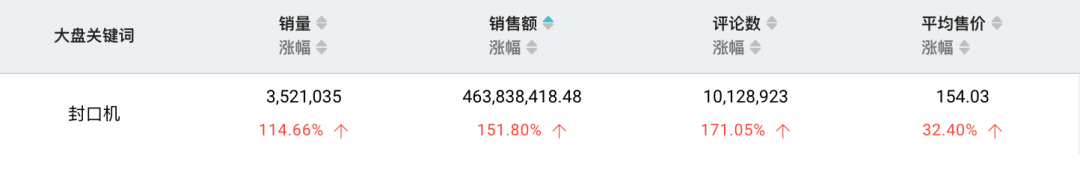 在小红书上,#真空封口机#话题的浏览量达1412万,多篇相关笔记都提到疫情下的囤货需求,或时新的上班族「一周备菜」计划。店怪兽大盘数据也显示,封口机近30日的销量和销售额同比均有翻倍增长。