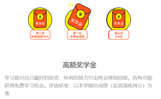 课程结束后我们老师会对大家进行综合考核,只要你有信心,你就可以来白嫖课程!