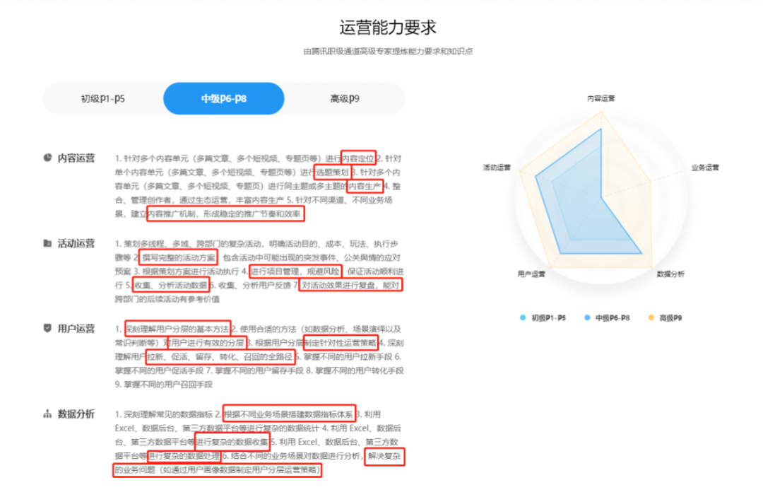 小编为大家列举了鹅厂P6-P8级别运营人的能力模型,大家可以进行差缺补漏。