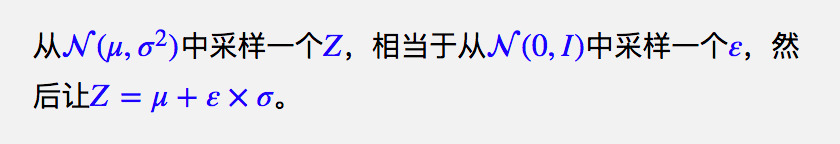 其实很简单,就是我们要从 p(Z|Xk) 中采样一个 Zk 出来,尽管我们知道了 p(Z|Xk) 是正态分布,但是均值方差都是靠模型算出来的,我们要靠这个过程反过来优化均值方差的模型,但是“采样”这个操作是不可导的,而采样的结果是可导的,于是我们利用了一个事实: