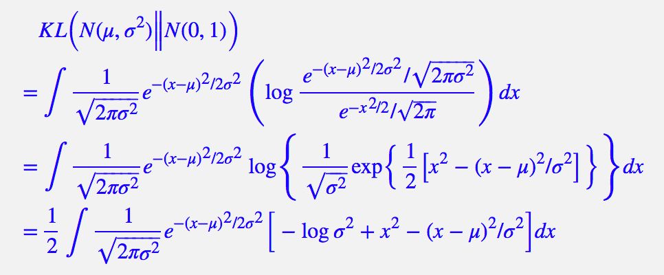 所以,原论文直接算了一般(各分量独立的)正态分布与标准正态分布的 KL 散度 KL(N(μ,σ^2)‖N(0,I))作为这个额外的 loss,计算结果为: