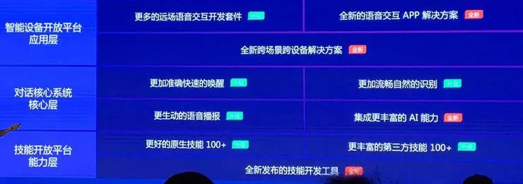 上图中,从上到下依次是DuerOS 1.0、DuerOS 2.0、DuerOS 3.0的版本及更新情况,其中绿色为升级能力、红色为更新能力。