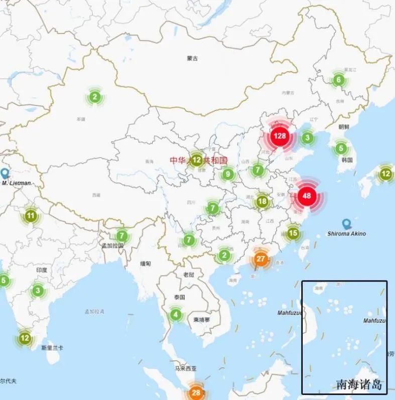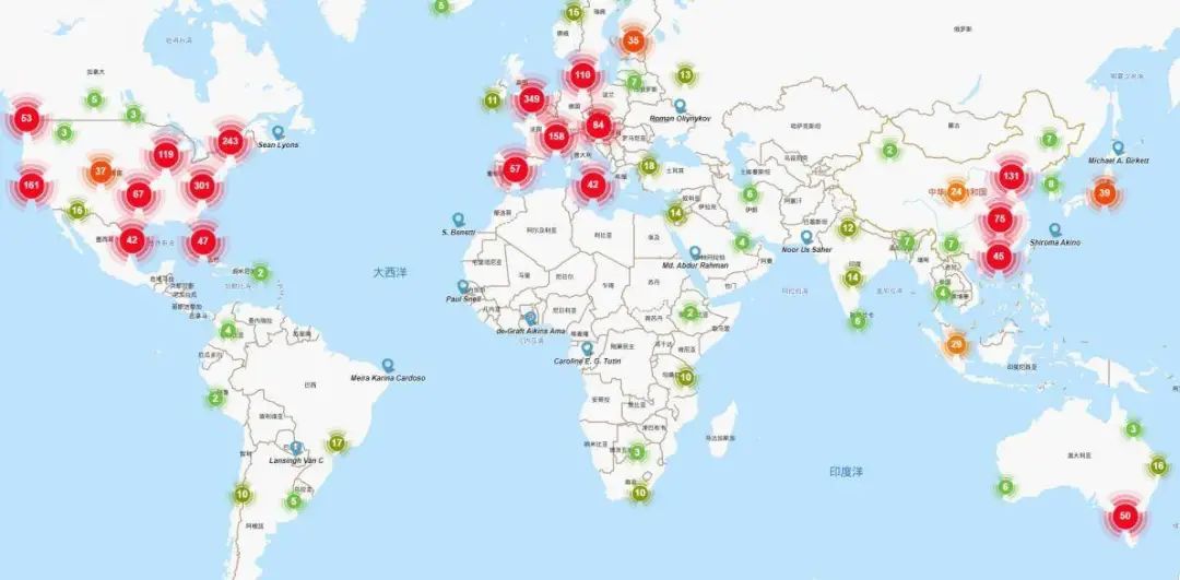 图 | 区块链领域顶尖人才全球分布(来源:科技情报大数据挖掘与服务系统平台 AMiner)