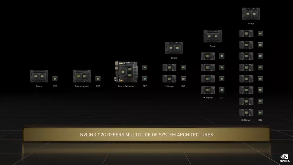 此外,Grace CPU超级芯片与NVIDIA ConnectX-7 NIC一起提供了配置到服务器中的灵活性,可作为独立的纯CPU系统或作为具有1 个、2个、4个或8个基于Hopper显卡的加速服务器。