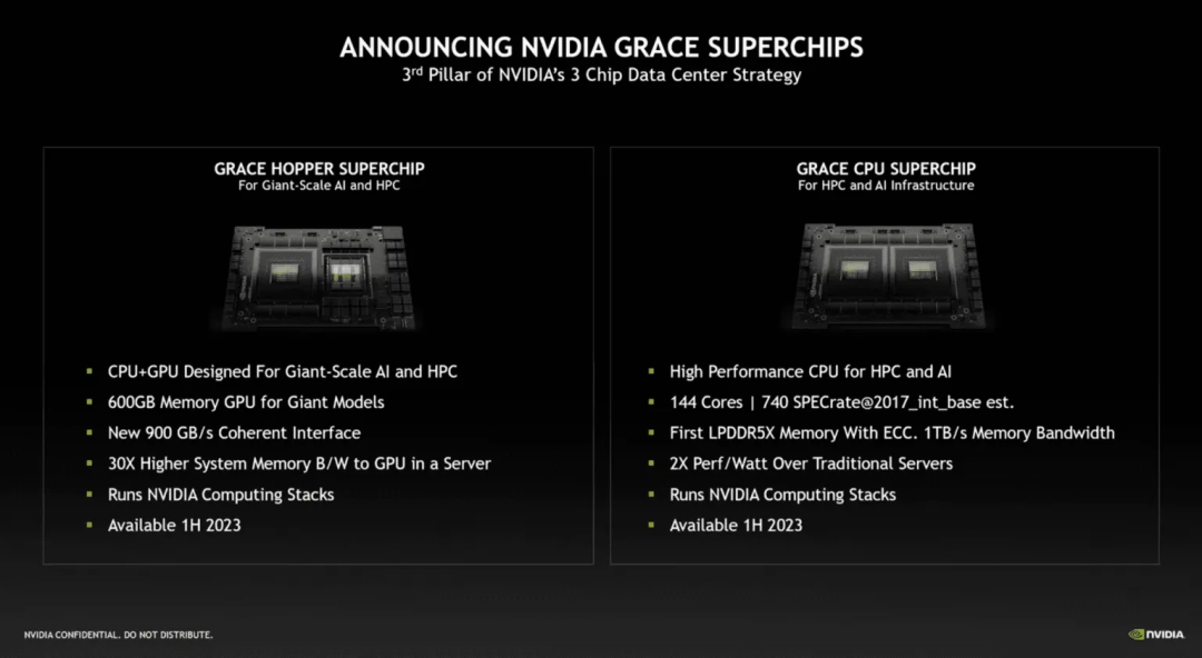 Grace CPU超级芯片拥有更先进的能效和内存带宽,其创新的内存子系统由带有ECC的LPDDR5x内存组成。
