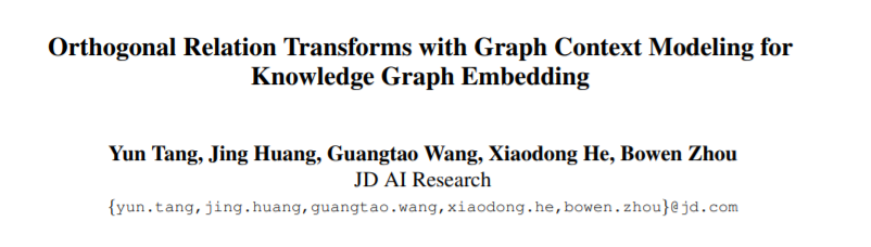3、Orthogonal Relation Transforms with Graph Context Modeling for Knowledge Graph Embedding(正交关系转换与图上下文建模的知识图谱嵌入),ACL 2020