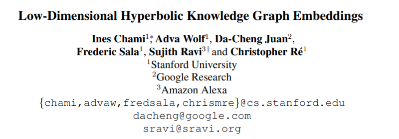 2、Low-Dimensional Hyperbolic Knowledge Graph Embeddings(低维双曲知识图谱嵌入),ACL 2020