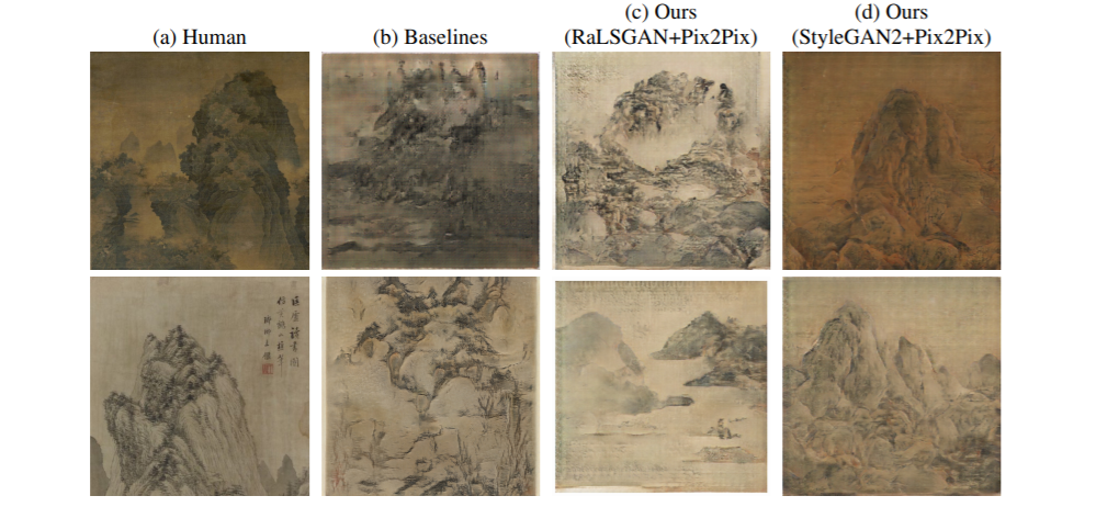 大多数GAN研究都集中在西方艺术上,目前我们已经看到不少AI生成写实主义、后现代,甚至是抽象主义的作品,而很少能看到AI在传统东方艺术上的表现。传统东方艺术同样拥有悠久的历史和深刻的文化意义,在美学上也与西方艺术一样值得深入研究。