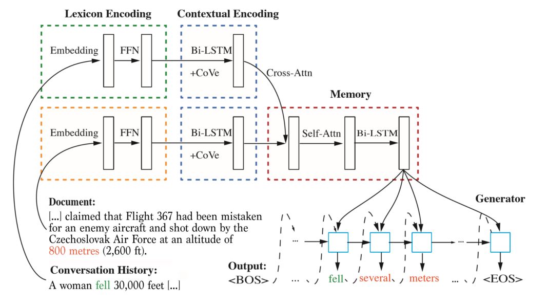 训练会话系统的主要瓶颈之一是缺少能够捕捉到世界上大量非会话数据中所包含的丰富信息的会话数据。因此,我们需要能够利用后者的好工具。例如,为了训练拥有维基百科或其他百科全书资源中包含的所有知识的智能代理,Icecaps 实现了一种以知识为基础的对话 方法,该方法结合了机器阅读理解和响应生成模块。该模型使用注意力将内容从与上下文相关的知识源中分离出来,从而使模型产生更明智的响应。
