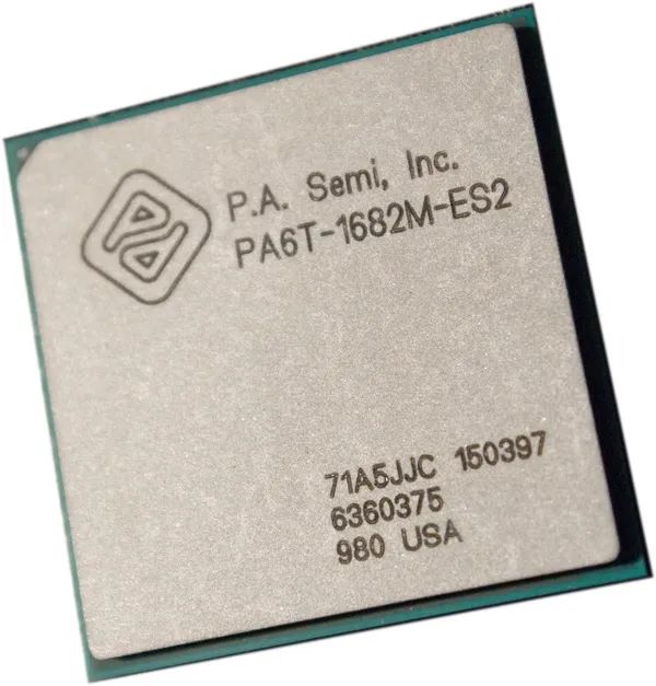 PA Semi 的首款主要产品是面向 Power ISA 的处理器 PWRficient,主打高性能低功耗,其中的 PA6T-1682M 处理器基于 65 nm 工艺,双核 2GHz,典型功耗 5-13W 且最高不超 25W。