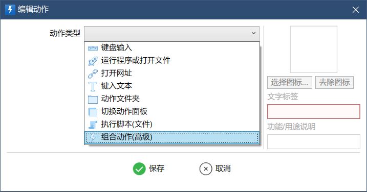 Quicker 最强大的地方在于自制动作。自制动作有 4 种基础动作类型「键盘输入、运行程序、打开网址、键入文本」,以及 2 种高级动作类型「执行脚本、组合动作」、还有 2 个切换面板动作。我们来看看基础和高级动作类型。
