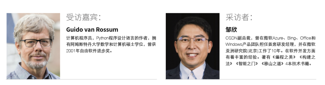 邹欣:上世纪 90 年代初,你在圣诞节假期作为个人兴趣项目创建了 Python,当时你有没有想过有一天 Python 会如此大放异彩?如何看待今天的 Python?