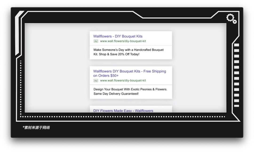 谷歌不同,它严格控制着这两者的数量,可能别人覆盖了三分之二的关键词,它就覆盖三分之一;别人可能展示 1234567 条广告,覆盖整个页面,谷歌就控制在 3 条以内,让页面保持清爽。