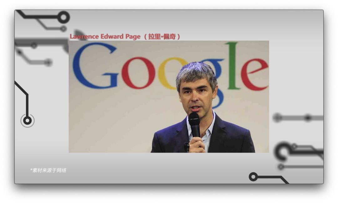 那么另外一位就是我们接下来要主动介绍的谷歌大佬——Lawrence Edward Page,那么 Larry Page 当时 12 岁的时候,看到了《尼古拉·特斯拉传》,这位伟大的发明家为爱迪生打了一辈子工,最后升职加薪通通没有,愤而出走后还遭受打压最后郁郁而终。这个悲伤的故事一直影响着少时的 Larry Page,所以从小立志要发明出改变世界、影响人类生活的产品。