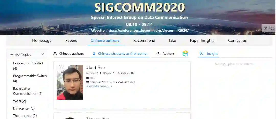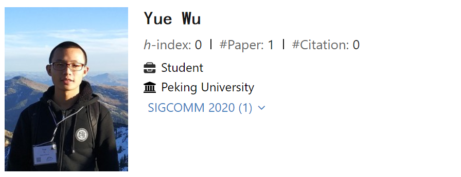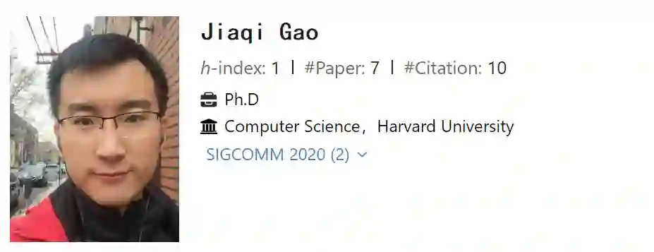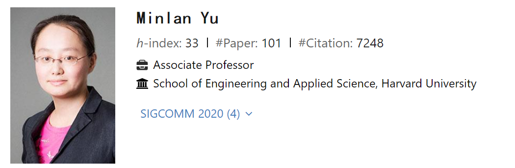 这里仅仅列出了华人作者与华人一作学生的代表,想了解完整的华人信息请移步 AMiner 会议智图开放平台 SIGCOMM 2020 专题了解会议的精彩内容,其内容包括论文、作者、华人学者、一作华人学生、论文 PPT 和视频等多维分析服务,是参会学者的会议智能助理。