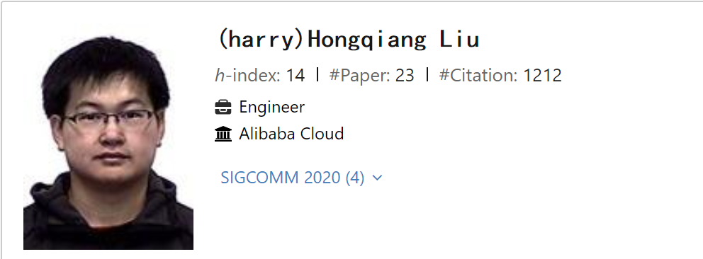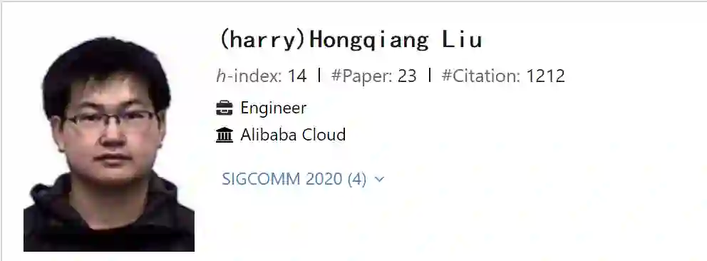 Hongqiang Liu 在本次会上发表了 4 篇论文。他在清华大学获得了电子工程硕士学位,在耶鲁大学获得了计算机博士学位,目前在阿里巴巴基础设施服务集团做网络研究。研究兴趣包括:云尺度的负载均衡,应用社区,应用性能,异步交换。