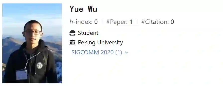 Yue Wu 是北京大学的一名本科生,本次会议有一篇论文入选。值得一提的是,他也是华人学生一作中唯一以本科生身份发表论文。他的研究兴趣集中于计算机系统,特别是无线系统和嵌入式系统。在这些领域有两年以上的研究经验,从事的研究项目从无线充电系统和可见光后向散射系统,去探索大规模 MIMO 系统和操作系统的进化性,他很擅长做系统研究,这需要实践和分析技能。他现在正在申请博士学位,以追求他对探索新事物和创新想法的热情,预祝他成功!