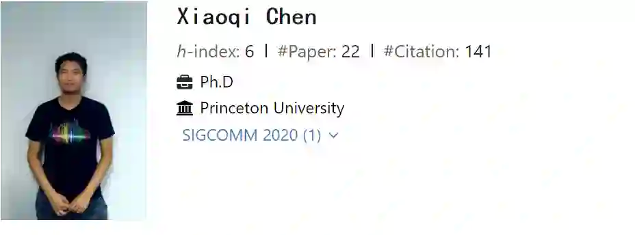 Xiaoqi Chen 的研究是使用可编程数据平面进行网络测量。他的兴趣还包括数据中心网络、草图和网络科学。他目前是普林斯顿大学的博士生,本届会议上有 1 篇论文作为一作入选。