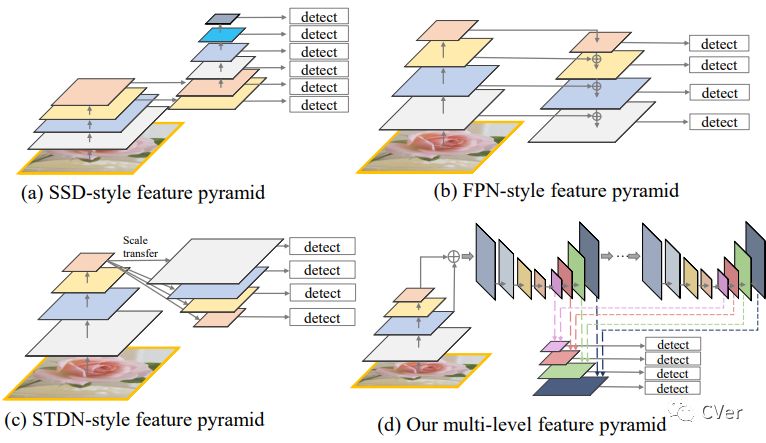 MLFPN型:本文新提出,整体思想是Multi-level&Multi-scale,下文详述。