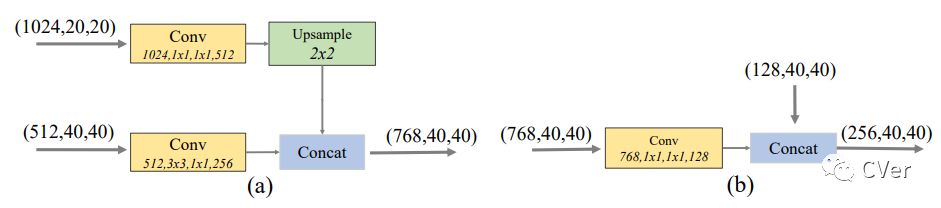 FFMv1使用两种不同scale的feature map作为输入,所以在拼接操作之前加入了上采样操作来调整大小;