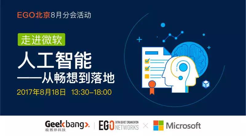 2017年8月18日,全球最具影响力的高端技术人社交网络EGO,邀您一起走进微软亚洲研究院,探访其AI战略,以及在人工智能应用方面的探索与实践。