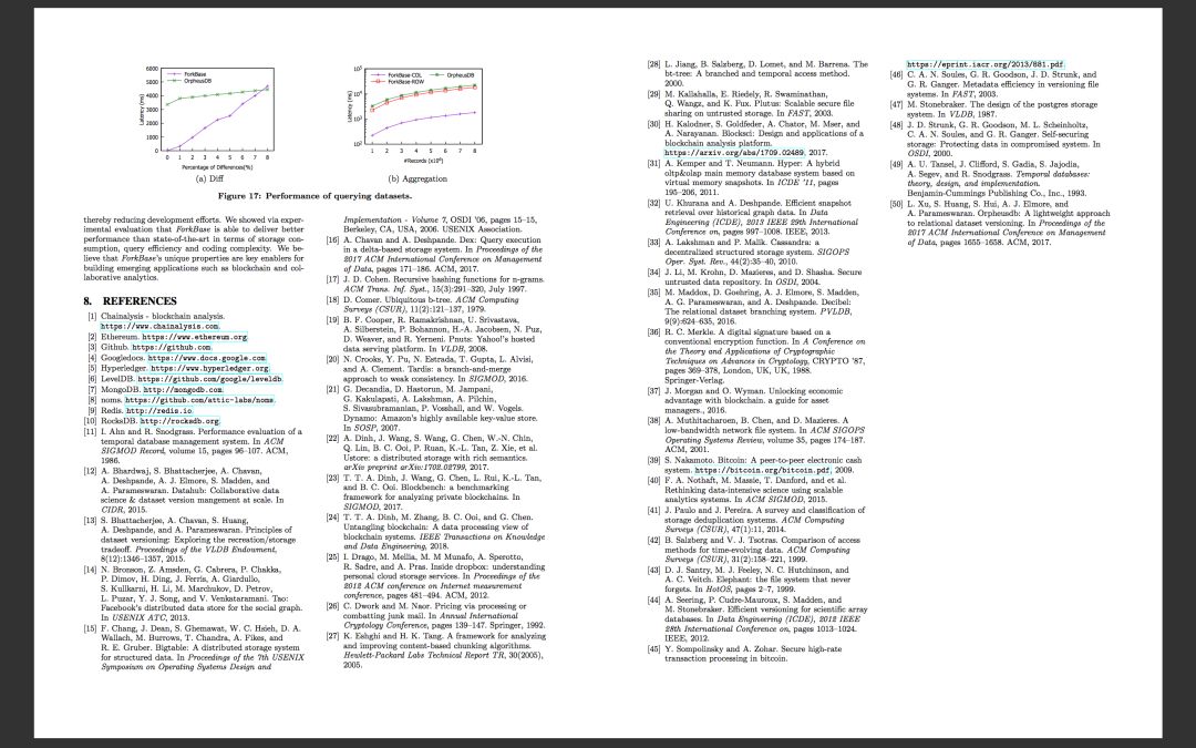 另一个好处是,数据现在随时可用于分析。如果是状态扫描查询,我们只要关注存储在最新块中的版本号,即可获得所请求的键的最新Blob对象。之后,我们关注base_version来检索以前的值。如果是块扫描查询,我们关注存储在请求块上的版本号来检索此块的二级Map对象。然后,我们遍历键值元组,并检索相应的Blob对象。
