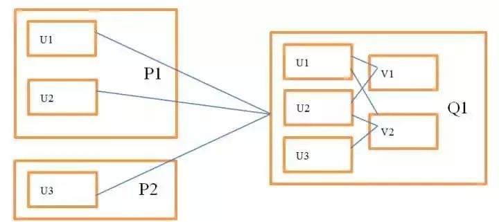 获取inblocks和outblocks数据是数据处理的重点。我们知道,通信复杂度是分布式实现一个算法时要重点考虑的问题,不同的实现可能会对性能产生很大的影响。我们假设最坏的情况:即求解商品需要的所有用户特征都需要从其它节点获得。 如下图3.1所示,求解v1需要获得u1,u2,求解v2需要获得u1,u2,u3等,在这种假设下,每步迭代所需的交换数据量是O(m*rank),其中m表示所有观察到的打分集大小,rank表示特征数量。