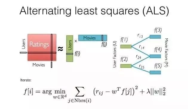 这就是ALS的矩阵分解方法。这样我们把系统的自由度从O(mn)降到了O((m+n)k)。