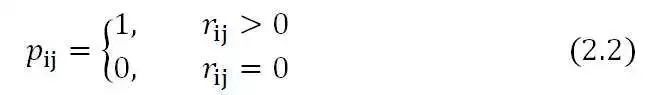 在显式反馈的基础上,我们需要做一些改动得到我们的隐式反馈模型。首先,我们需要形式化由变量衡量的信任度的概念。我们引入了一组二元变量,它表示用户u对商品v的偏好。的公式如下: