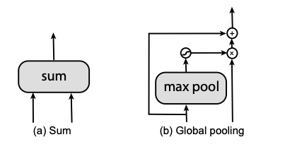 在步骤4中,我们在搜索空间中设计了两个二进操作,sum和global pooling,如图4所示: