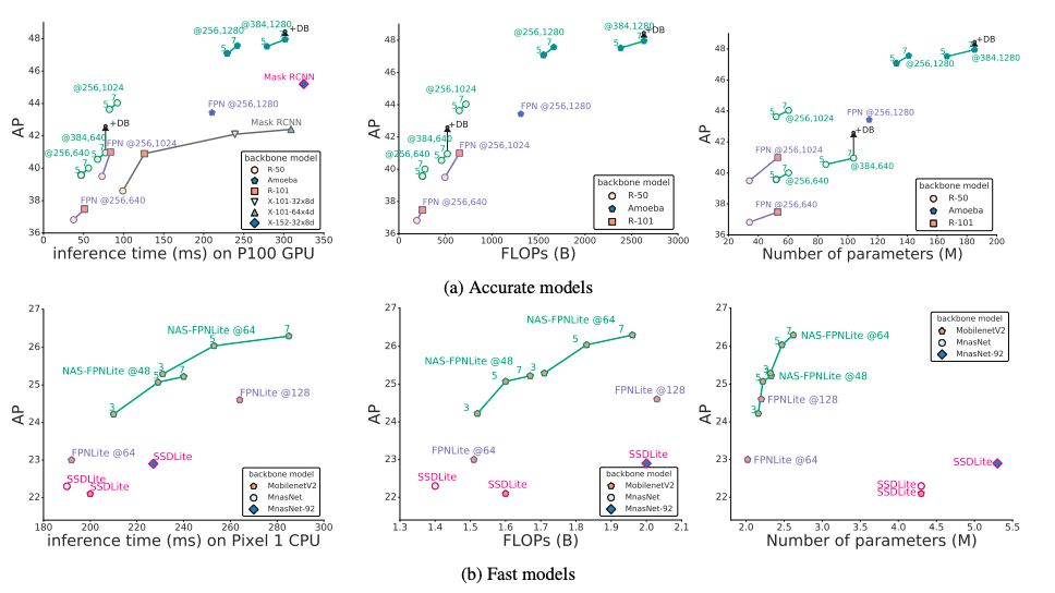 利用可扩展的NAS-FPN架构,我们讨论了如何在保持效率的同时构建准确的模型。