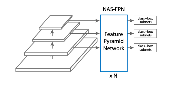 研究人员采用神经结构搜索,在一个新的可扩展搜索空间中发现了一种新的特征金字塔架构。