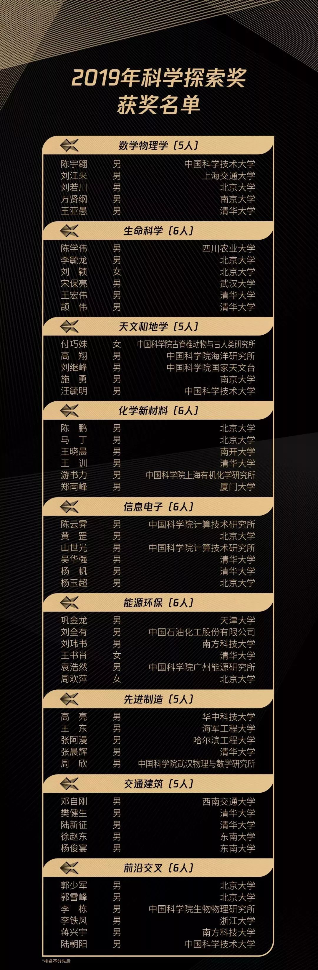 1.2019未来科学大奖获奖名单公布:邵峰、王贻芳、陆锦标、王小云获奖