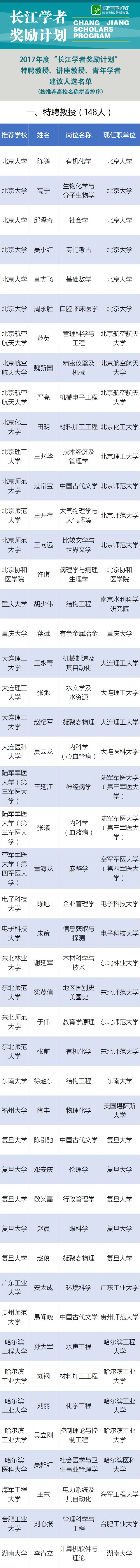 根据《“长江学者奖励计划”实施办法》,经高校推荐、通讯评审、会议评审等程序,共产生463名2017年度长江学者特聘教授、讲座教授和青年学者建议人选。现将名单予以公示,公示期自2018年1月5日至1月11日。若对人选有异议,请于1月11日前,以真实身份署名书面向我司反映,并提供联系方式,原则上不受理匿名意见。
