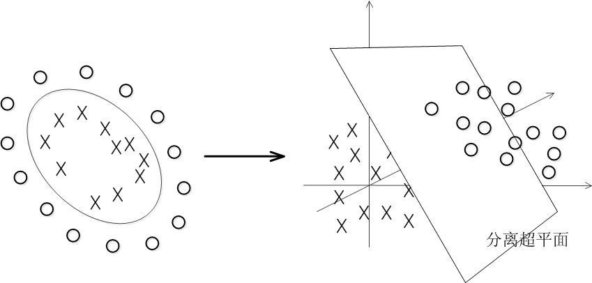其次,给定两个低维数据点,内核机可以使用核函数输出一个数字,这个数字等于相应的高维特征的内积。关键是,该算法可以使用这种技巧来找到超平面的系数,而无需真正进入高维空间。