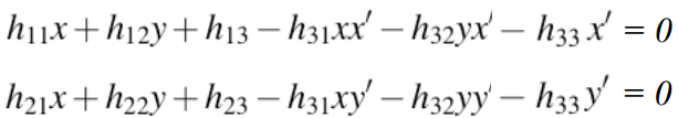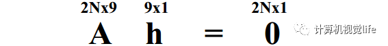 假如我们得到了两幅图片中对应的N个点对(特征点匹配对),那么可以得到如下线性方程组:
