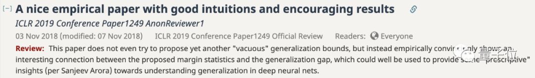 Yoshua Bengio同样开展过有关深度学习泛化问题的研究,他的团队提出了一个深度学习泛化保障方案(《Generalization in Deep Learning》),这篇ICLR 2019的论文里也引用了他们的文章。