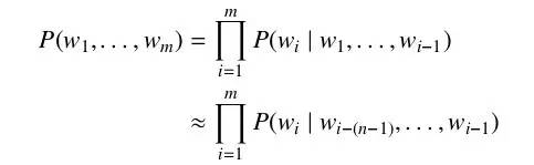 最简单又却又最常用的语言模型是 N 元语言模型 (N-gram Language Model,N-gram LM) 。N 元语言模型假设当前在给定上文环境下,当前词的概率只与前N-1 个词相关。于是词序列 w1, . . . , wm 的概率 P(w1, . . . , wm) 可以近似为
