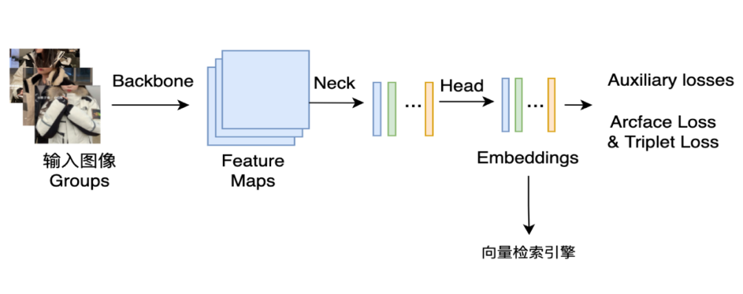 比如网络设计中加入图像的全局和局部信息以进行端到端搜索;应用无监督领域自适应(UDA)技术,利用有限标注数据和海量无标注数据提高整个模型在真实场景的泛化能力;通过多任务学习解决召回结果类目不一致的问题等等。