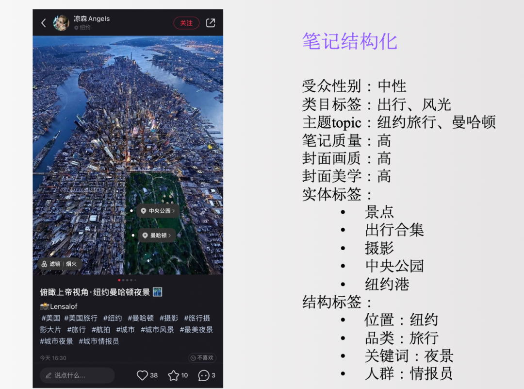 单纯根据小红书的一篇图片笔记,提取各种标签信息,下次搜索文字「中央公园」就能连接到这张图片。
