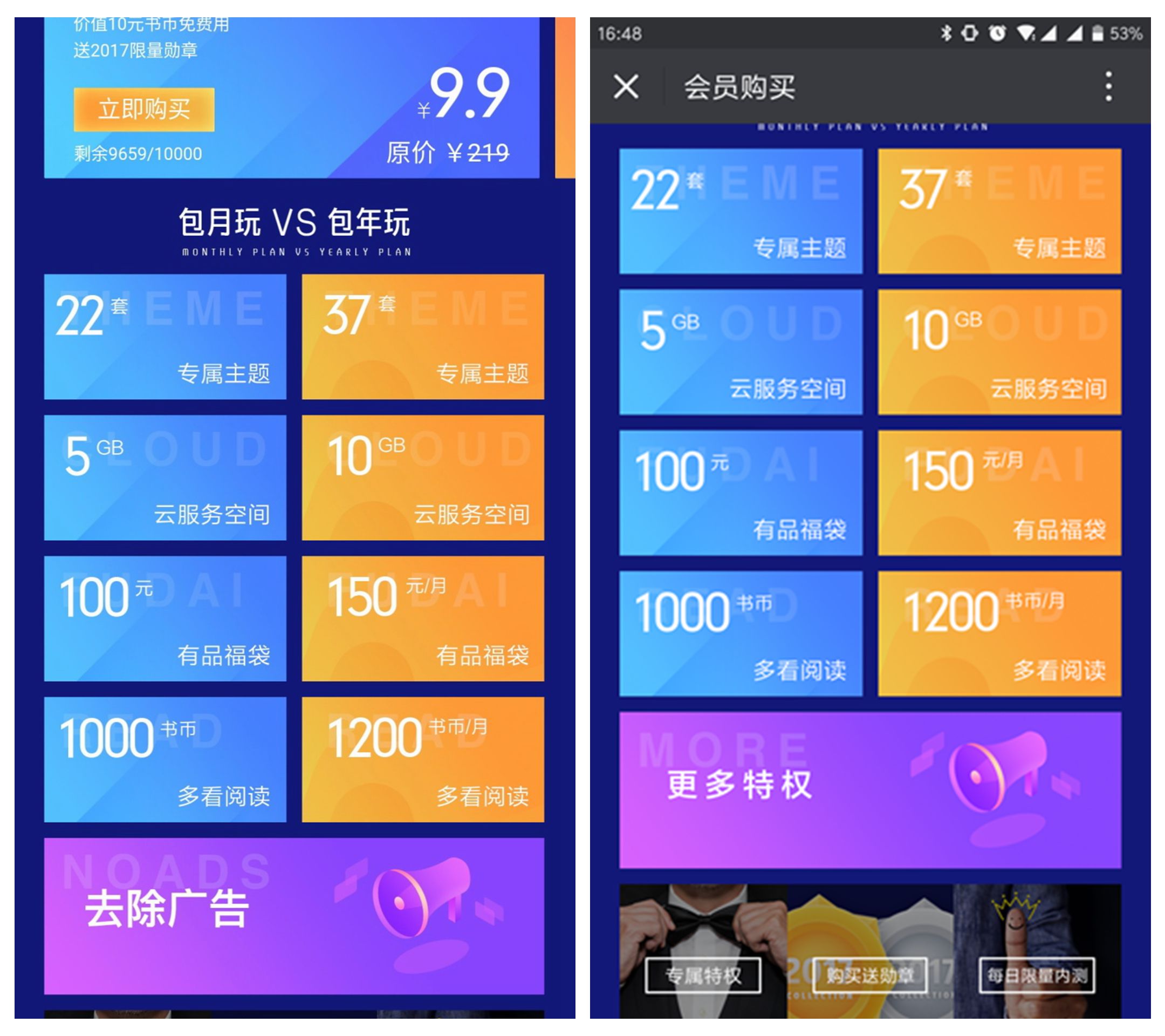 有趣的是,现在小米会员宣传页(右为最新),已经不把“去除广告”作为宣传点了
