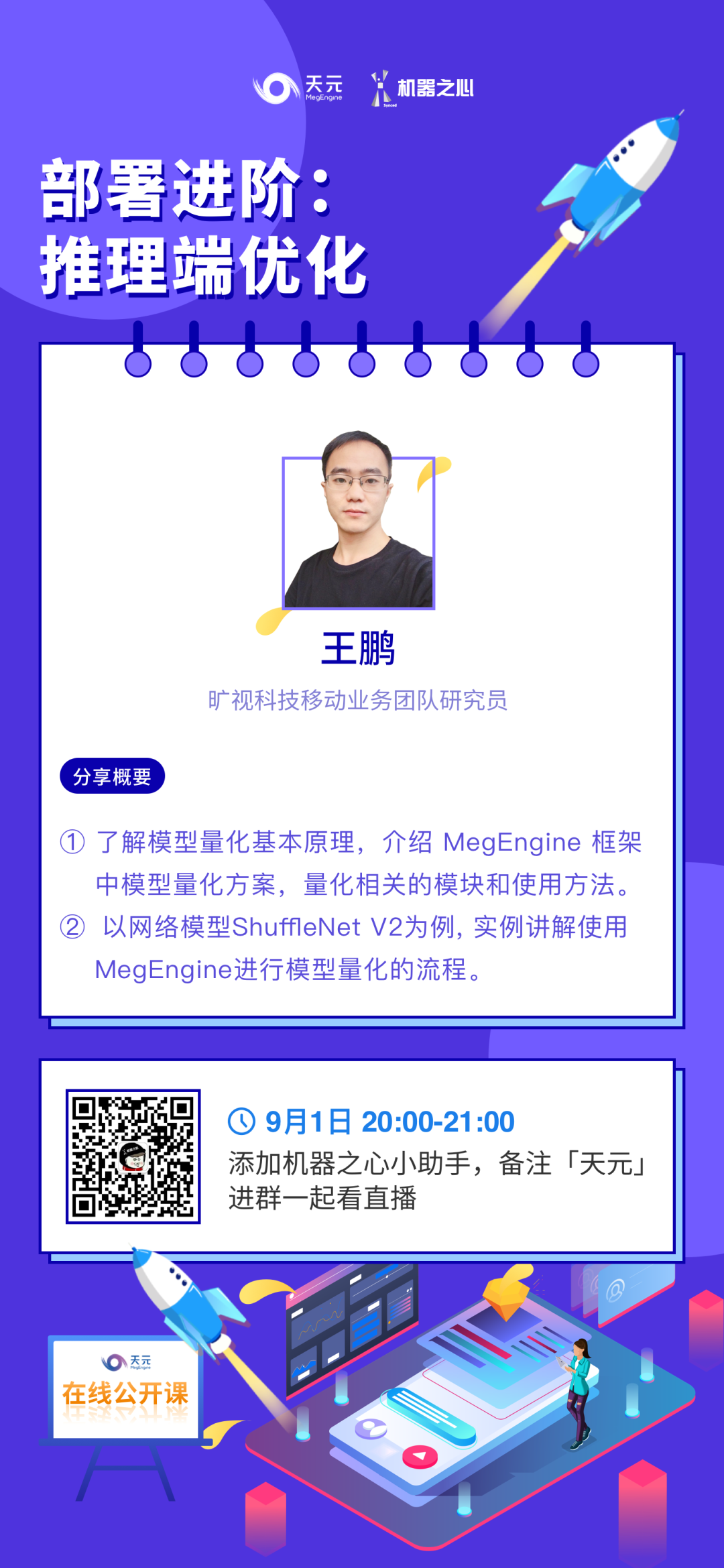 以网络模型ShuffleNet V2为例, 实例讲解使用MegEngine进行模型量化的流程。