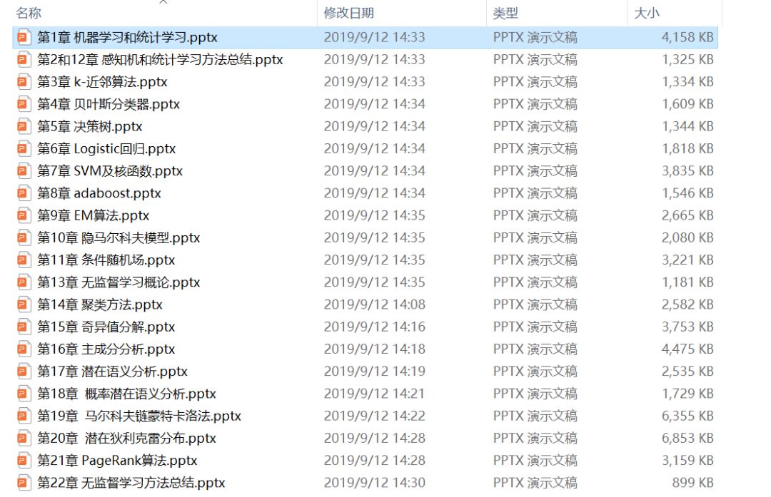 包括感知机、k 近邻法、朴素贝叶斯法、决策树、逻辑斯谛回归与最大熵模型、支持向量机、提升方法、EM 算法、隐马尔可夫模型和条件随机场,以及聚类方法、奇异值分解、主成分分析、潜在语义分析、概率潜在语义分析、马尔可夫链蒙特卡罗法、潜在狄利克雷分配和 PageRank 算法等。