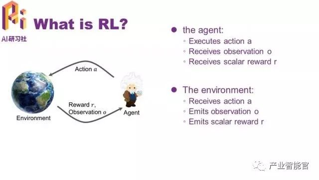 我们先看一下强化学习是什么,强化学习有两个主要组成部分,一个是 agent,另一个是环境。